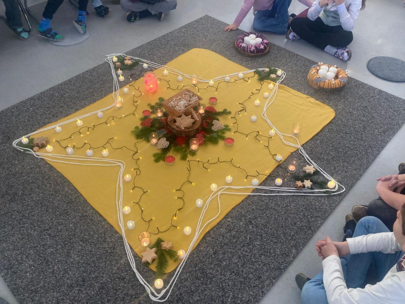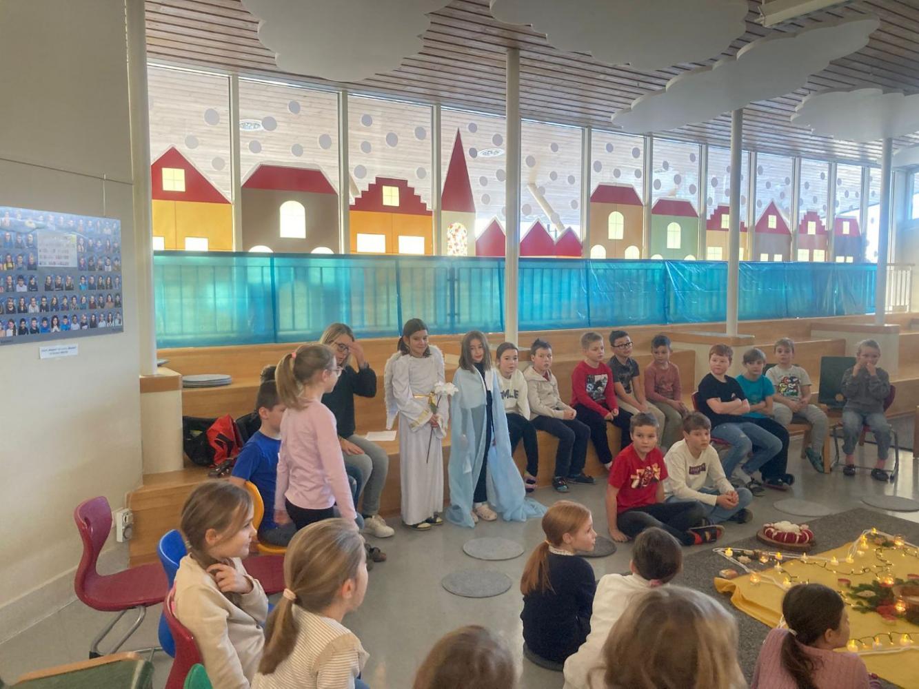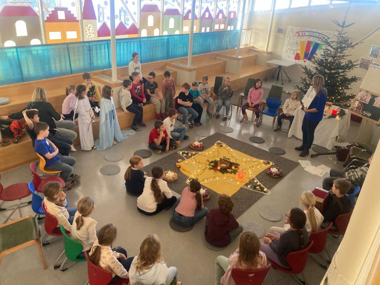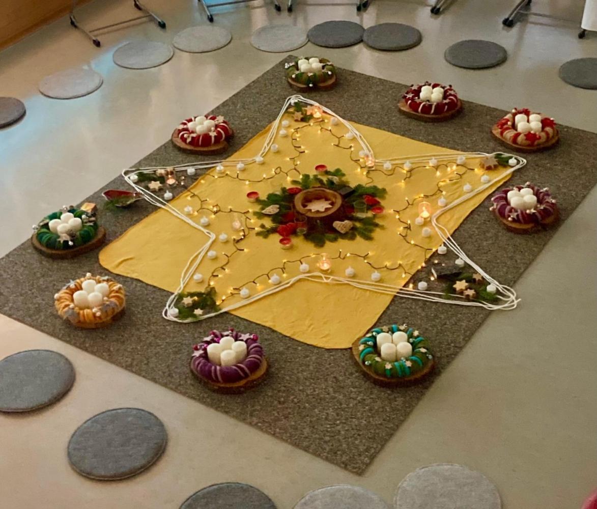 Adventkranzweihe von Stefanie Niederhauser 01. Dezember 2025 Advent Am Freitag trafen wir uns in der Aula, um bei Kerzenschein, mit schönen Liedern und einer weihnachtlichen Geschichte und mit der Segnung der Adventskränze den Beginn des Advents in unserer Schule zu feiern. Schön war's!