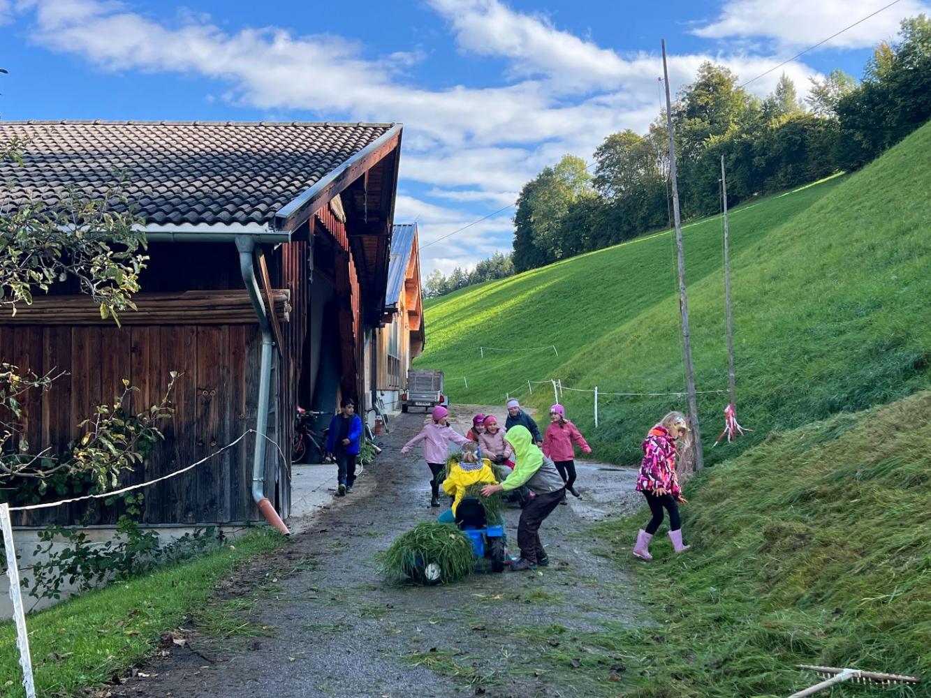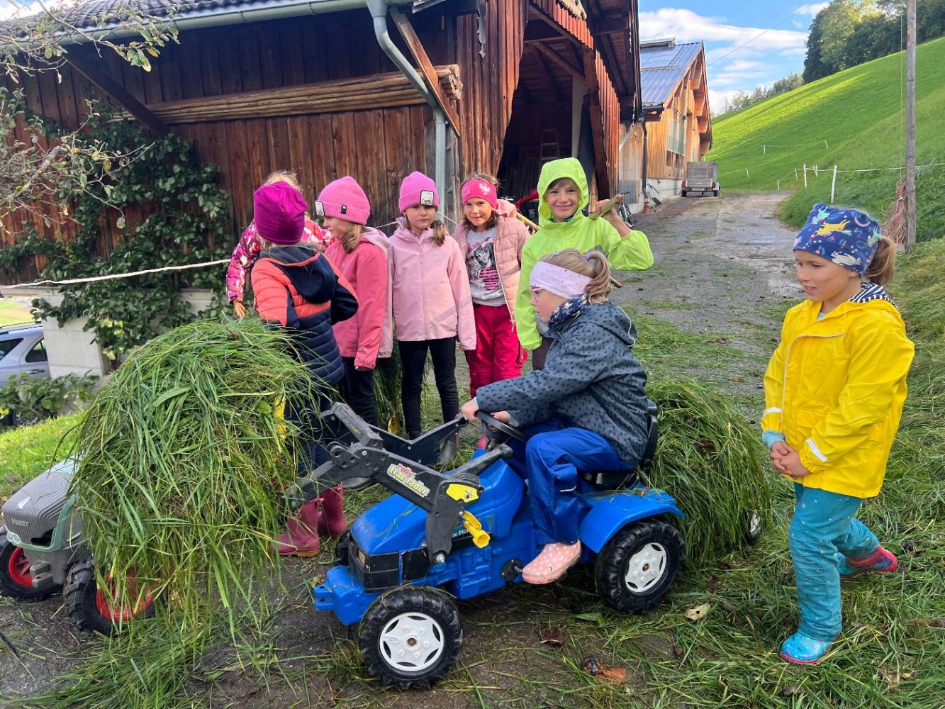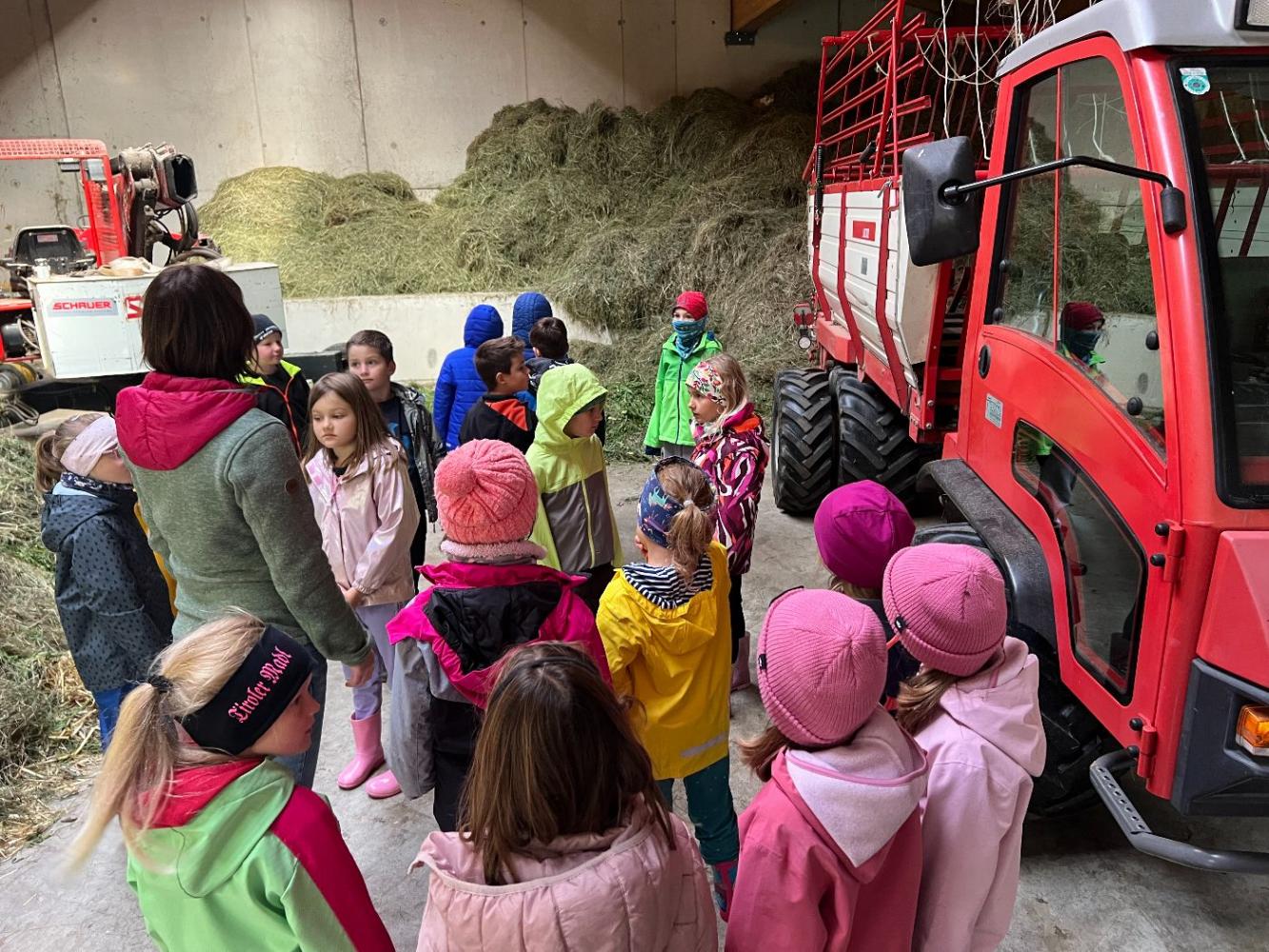 Am 01. Oktober 2025 durfte die 2b-Klasse das "Zuhause" von Mitschülerin Hanna kennenlernen. Auf dem Bio-Bauernhof von Familie Klingenschmid gab es viel zu entdecken. Danke an Maria Klingenschmid für diesen tollen Vormittag auf dem Hof. Die Kinder durften die Kühe und die kleinen Kälber streicheln und mit ihnen spielen, jedes Kind durfte ihre eigenen leckeren, gesunden Jogurts herstellen und die Heuarbeit kam auch nicht zu kurz.