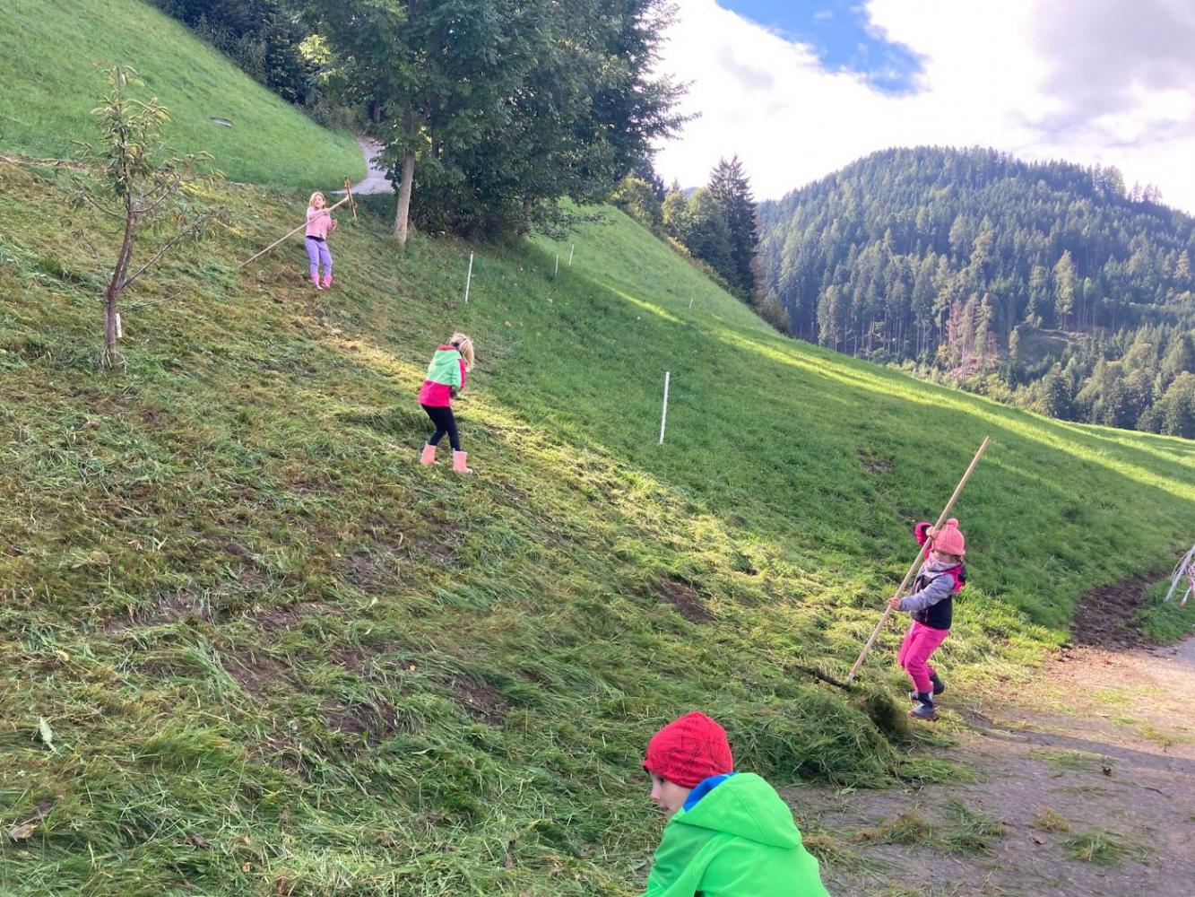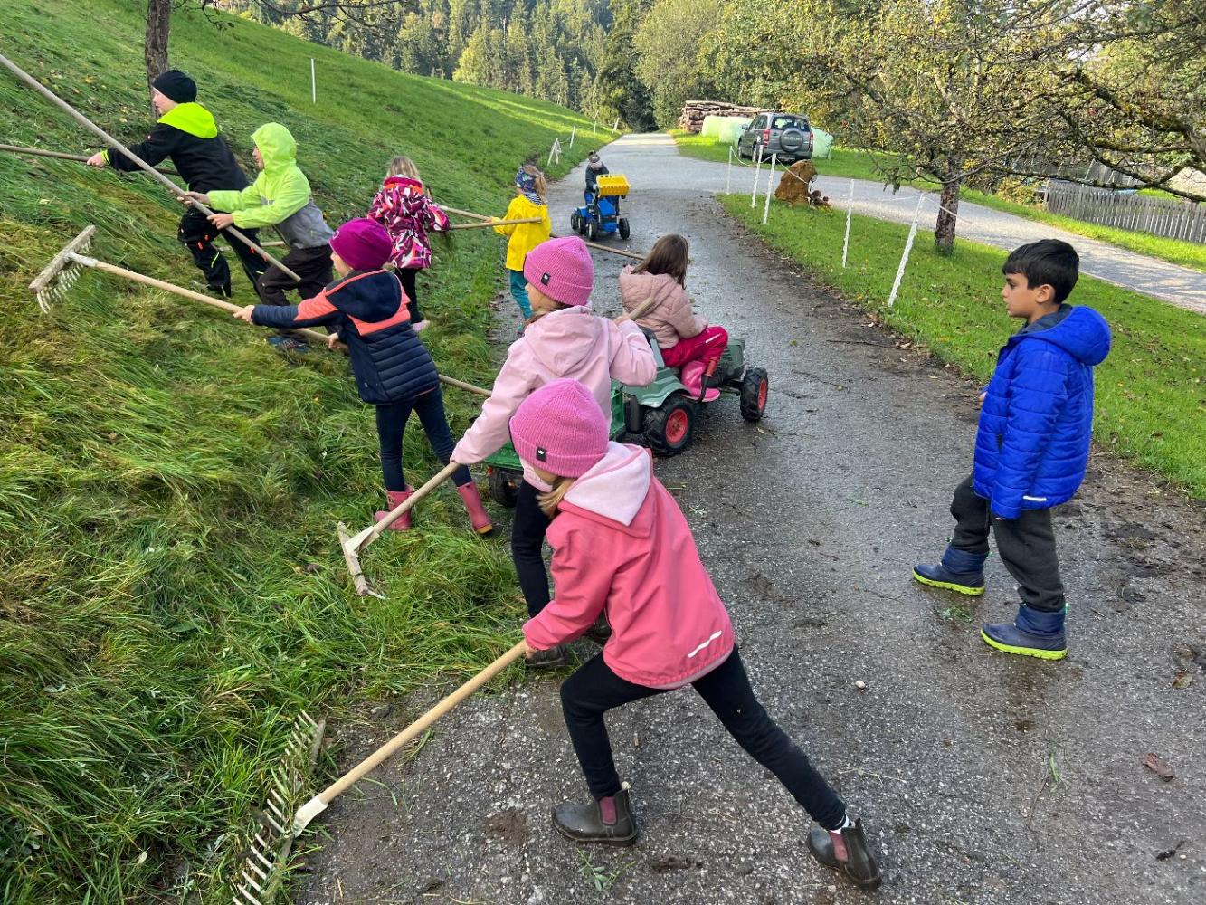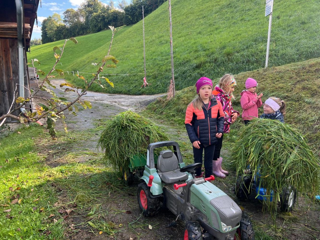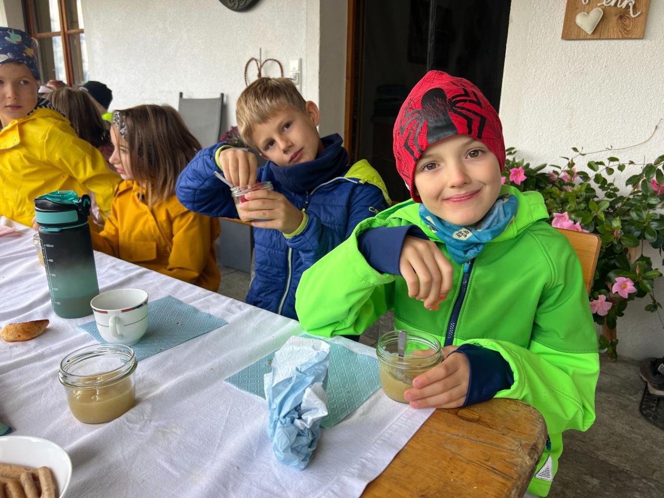 Am 01. Oktober 2025 durfte die 2b-Klasse das "Zuhause" von Mitschülerin Hanna kennenlernen. Auf dem Bio-Bauernhof von Familie Klingenschmid gab es viel zu entdecken. Danke an Maria Klingenschmid für diesen tollen Vormittag auf dem Hof. Die Kinder durften die Kühe und die kleinen Kälber streicheln und mit ihnen spielen, jedes Kind durfte ihre eigenen leckeren, gesunden Jogurts herstellen und die Heuarbeit kam auch nicht zu kurz.