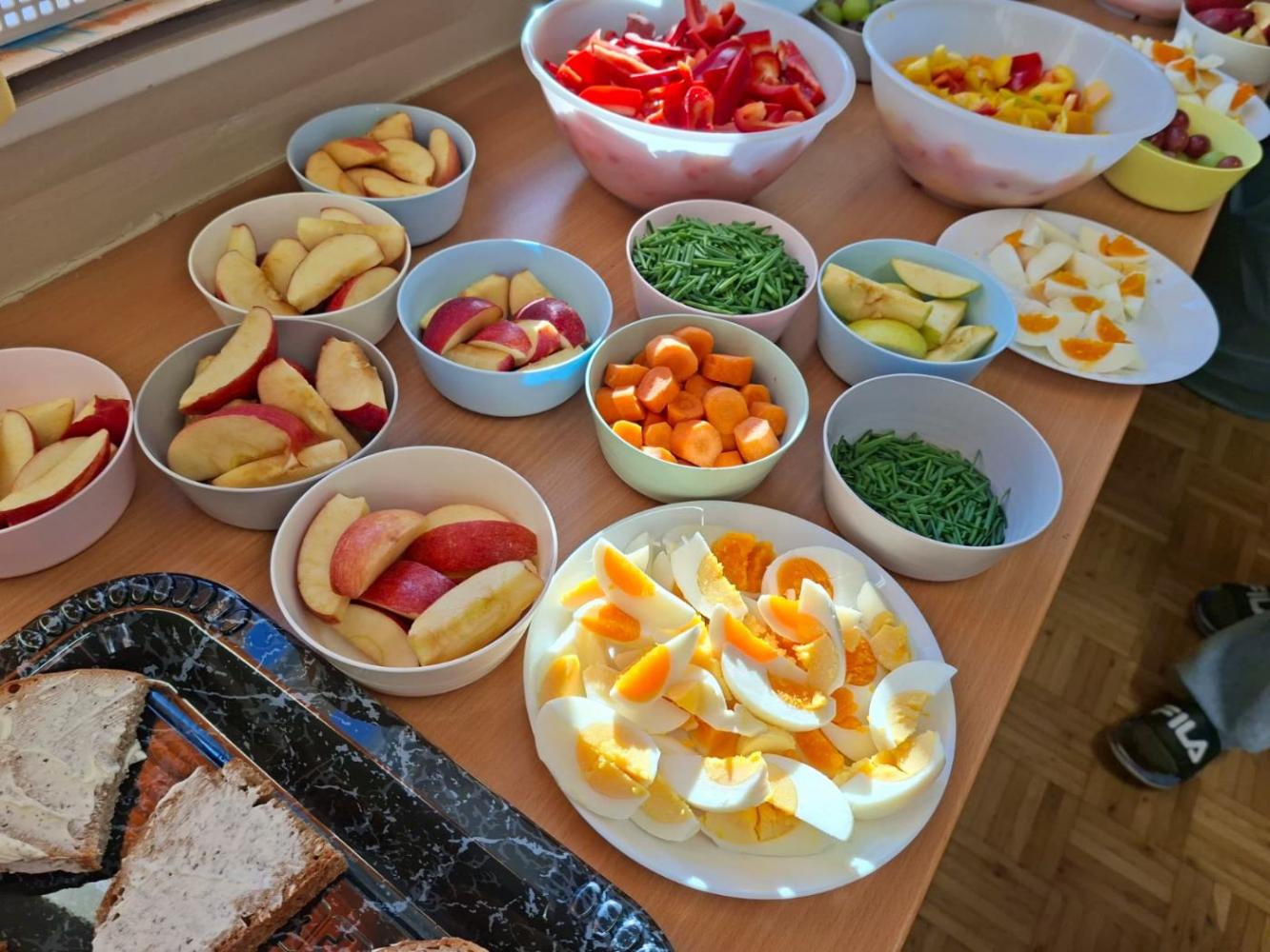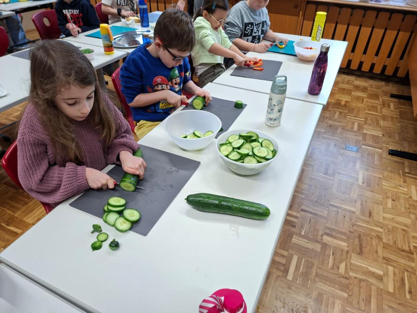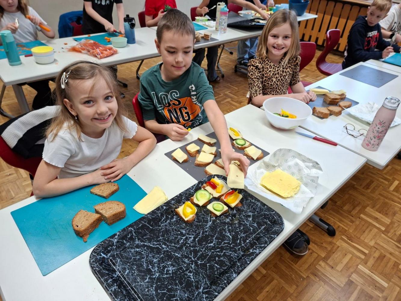 Die Kinder der 2c-Klasse durften die gesunde Jause für die ganze Schule vorbereiten. Mit viel Freude schmierten sowie belegten sie Brote und schnitten Obst und Gemüse. In der großen Pause kamen viele hungrige Kinder vorbei und freuten sich über das leckere Buffet!