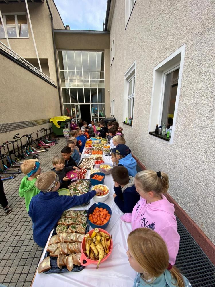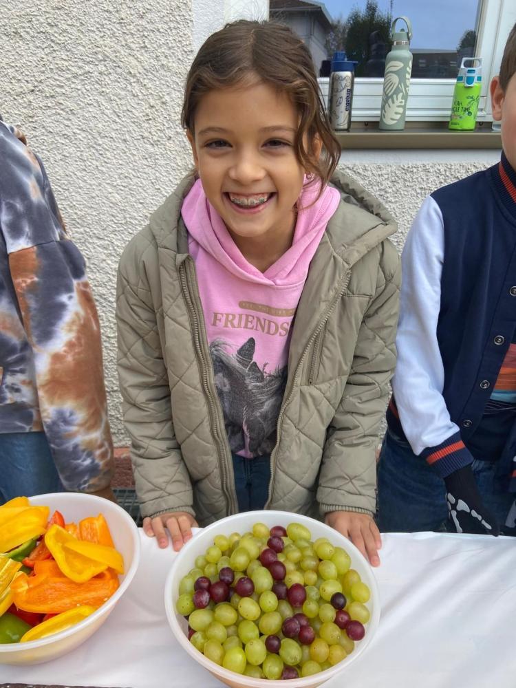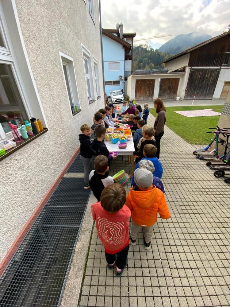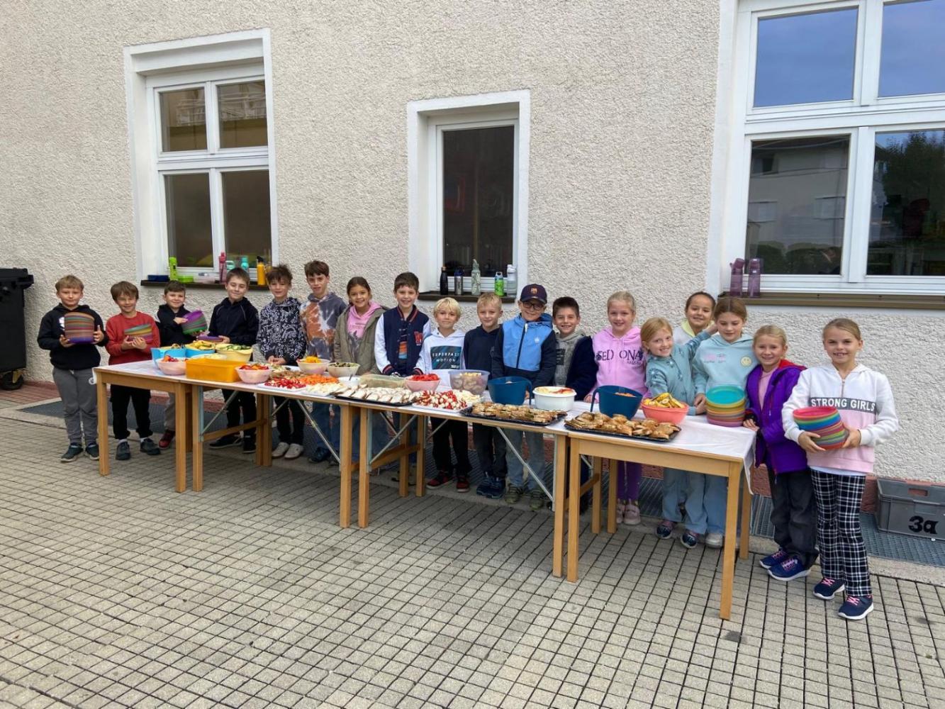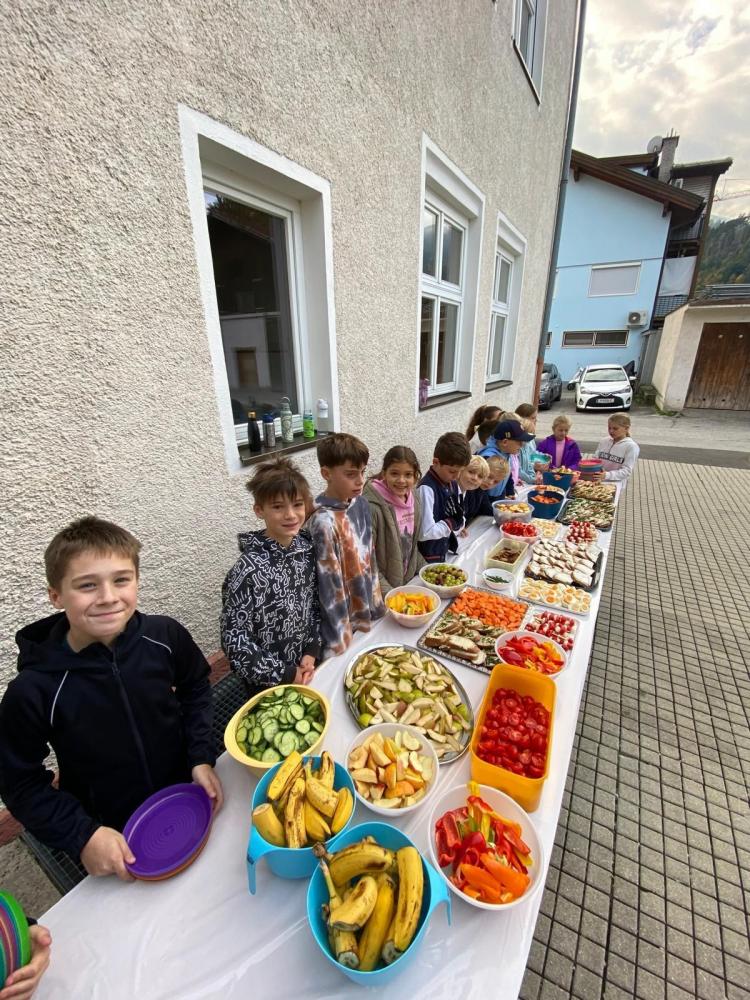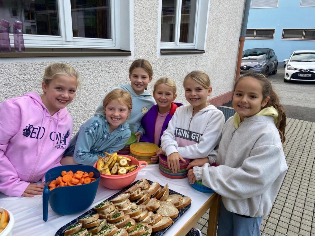 Bei traumhaftem Herbstwetter konnten die Kinder der 3a-Klasse ihre selbstgemachte „Gesunde Jause“ im Garten servieren.