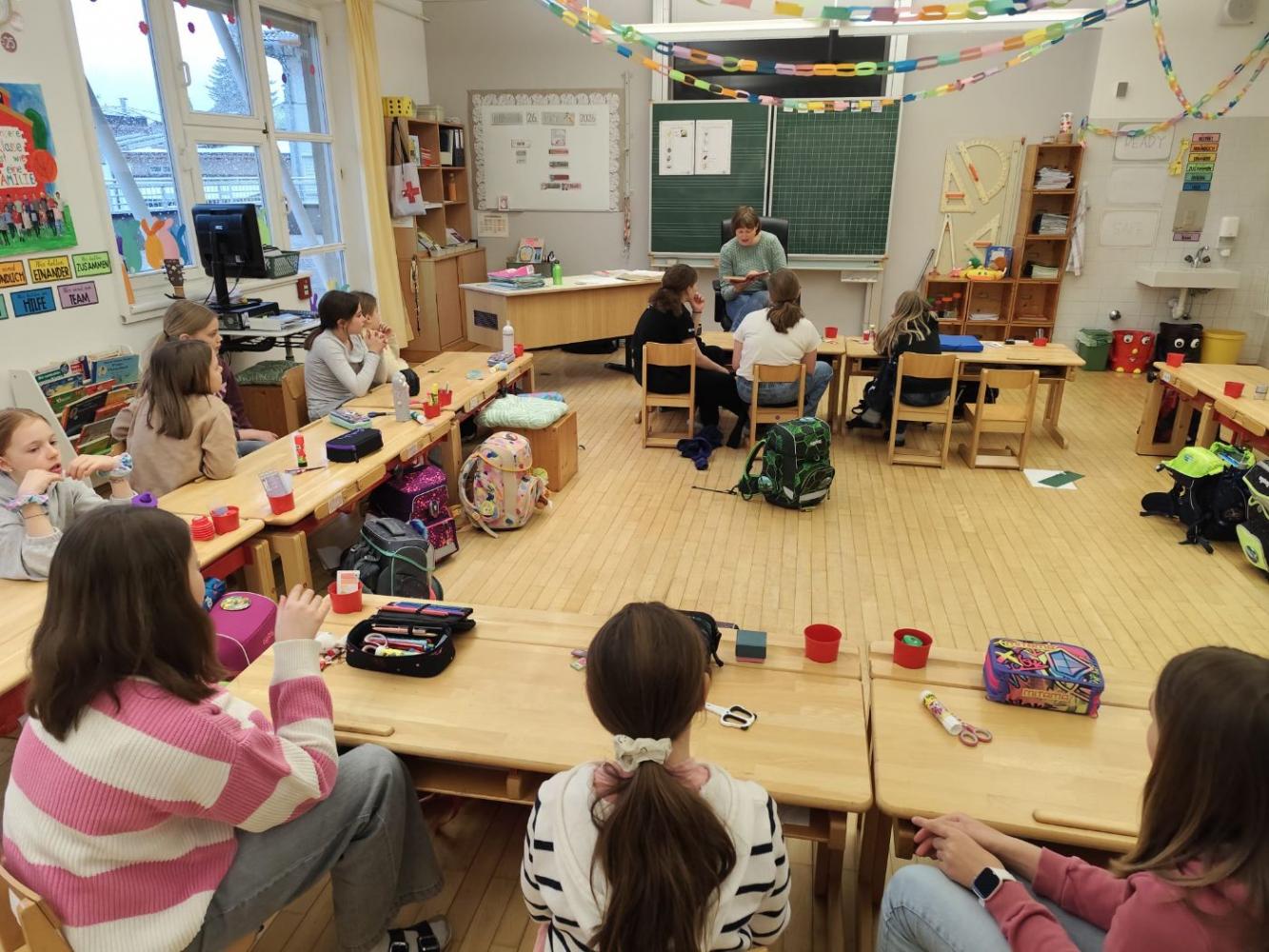 Die Schülerinnen und Schüler konnten sich im Vorfeld Kinotickets aussuchen und sich dann auf die spannende Suche nach der passenden „Vorstellung“ machen. In den verschiedenen Klassenräumen erwarteten sie liebevoll gestaltete Leseecken, in denen vorgelesen wurde. Doch damit nicht genug: Nach jeder Vorlesestunde gab es eine kreative Aktivität, die das Gehörte vertiefte.