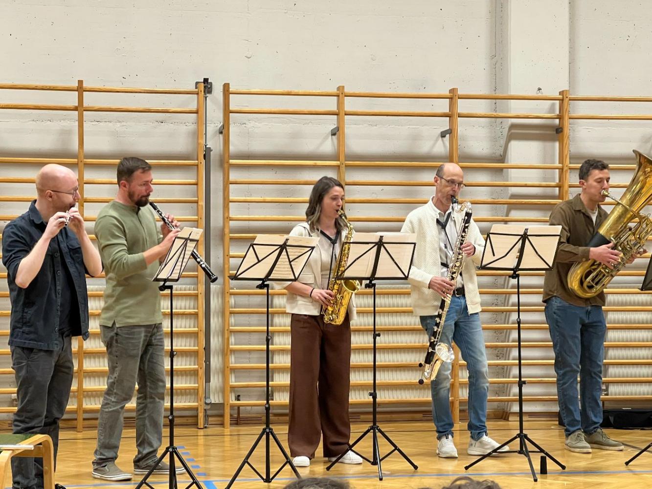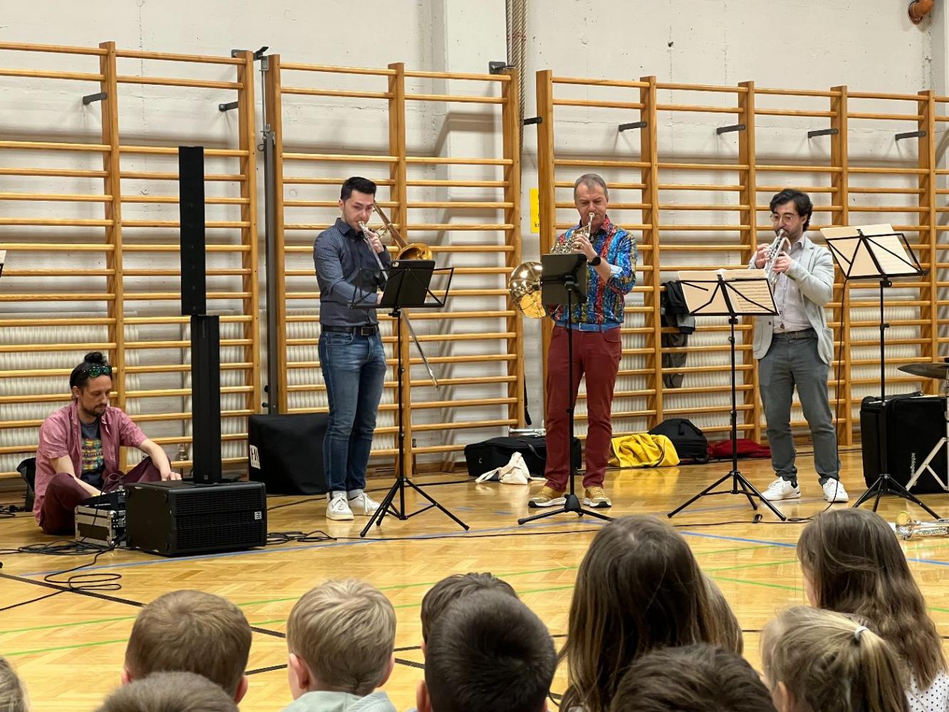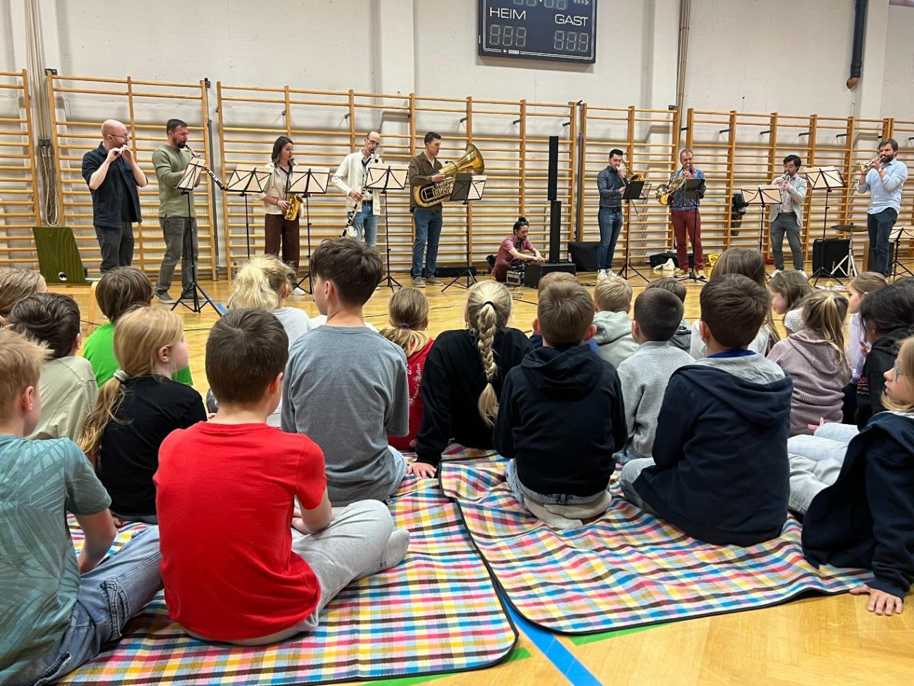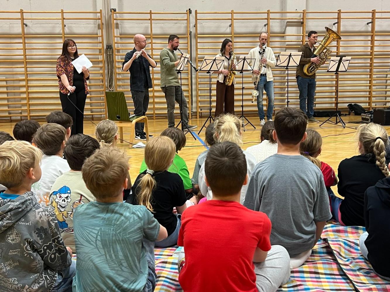 Heute durften wir in unserem Turnsaal ein ganz besonderes Erlebnis genießen: ein „Picknickdeckenkonzert“ der Musikschule Wattens. In gemütlicher Atmosphäre präsentierten die Musikschullehrer:innen die Geschichte der kleinen Flöte „Piccolina“ und begeisterten uns mit wunderschönen Musikstücken auf Holz- und Blechblasinstrumenten.