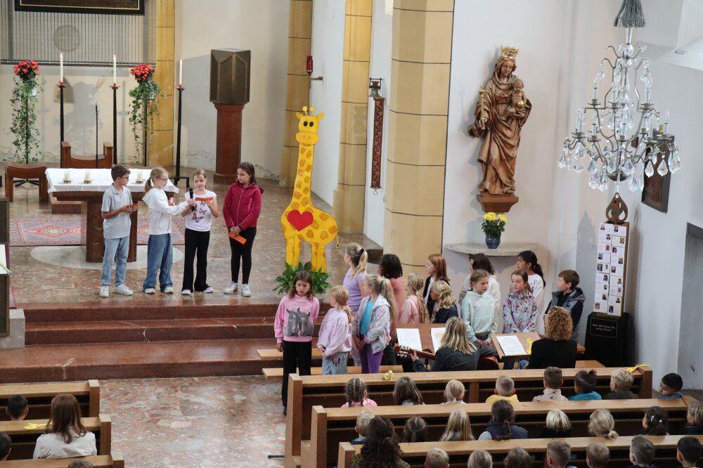 Religionsverbindende Feier zum Schulbeginn von Stefanie Niederhauser 09. September 2025 Schulbeginn Bei einer gemeinsamen multireligiösen Feier starteten wir ins neue Schuljahr und lernten dabei die kleine Giraffe mit dem großen Herz kennen. Wir freuen uns auf ein herzliches Miteinander in unseren Klassen!