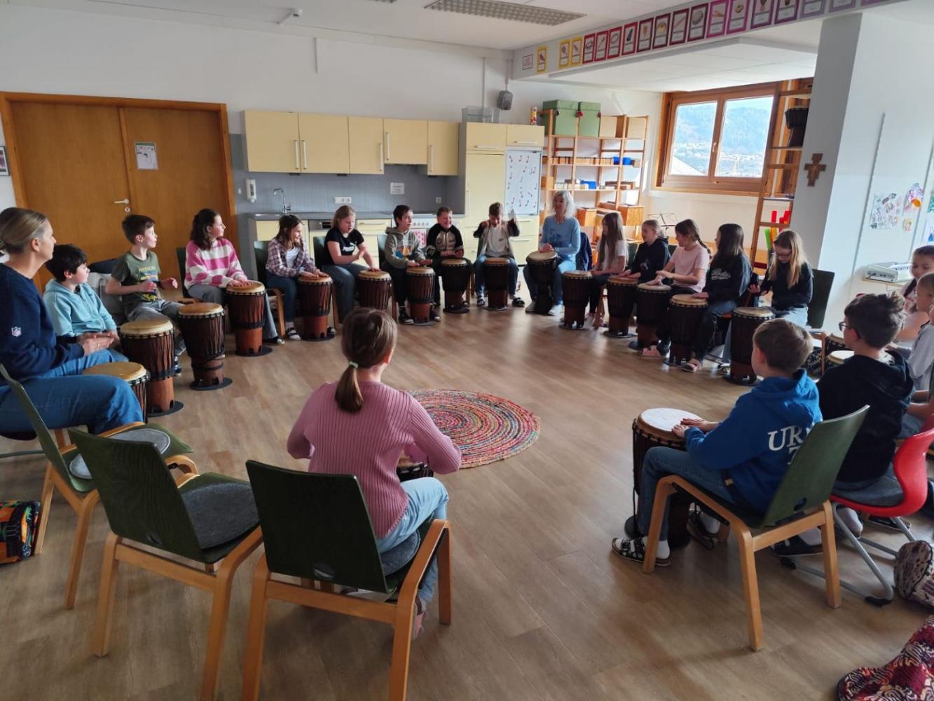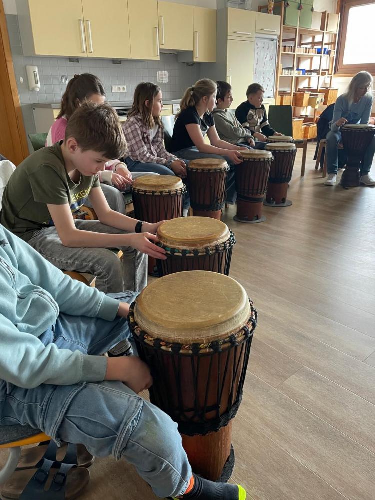 Trommelworkshop in der 4b-Klasse