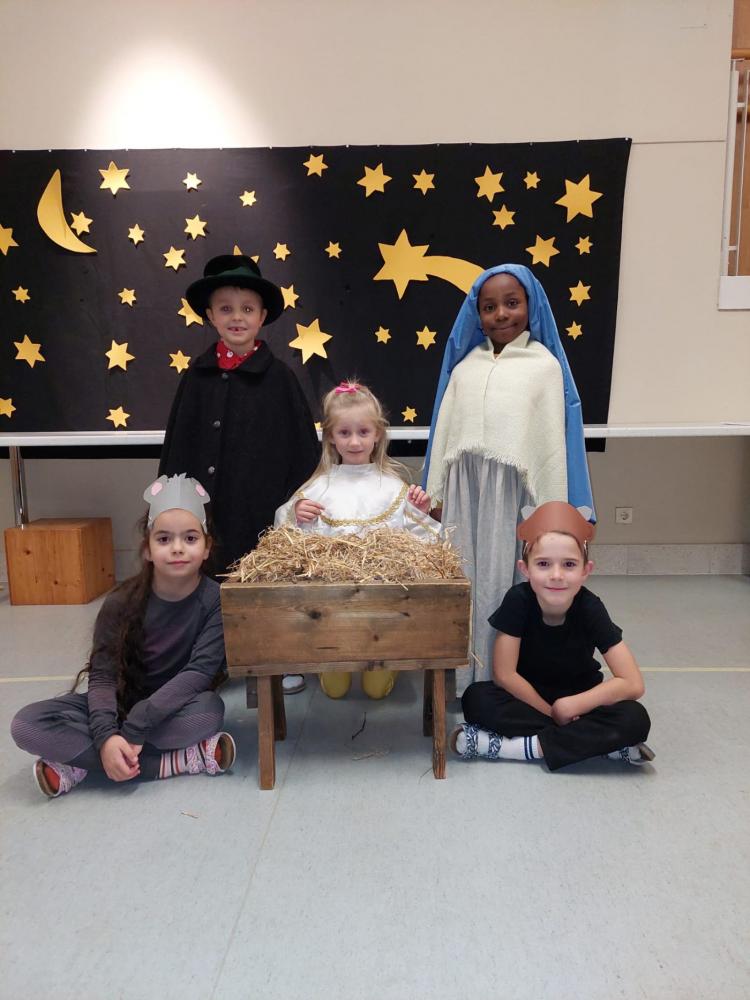 Am Freitag, 12. Dezember stimmten sich die Kinder und Lehrerinnen der 1b-Klasse gemeinsam mit den eingeladenen Eltern und Geschwistern auf Weihnachten ein. Bei der Weihnachtsfeier am Nachmittag spielten die Kinder ein Krippenspiel vor und sangen Weihnachtslieder. Die Eltern hatten ein schönes Buffet hergerichtet, wo sich alle die leckeren Köstlichkeiten schmecken ließen.