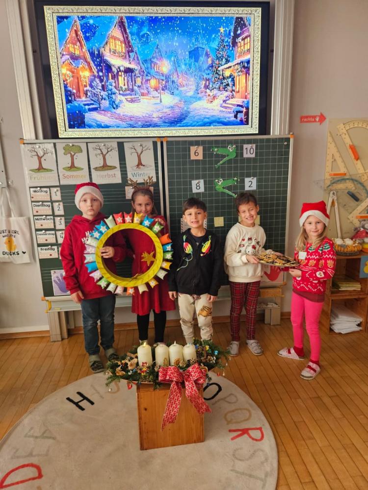 Am Donnerstag, 04.Dezember verwandelte sich die 1a-Klasse am Vormittag in eine Weihnachtswerkstatt. Bei sechs verschiedenen Stationen konnten die Kinder mit Hilfe von vielen Elternteilen und unseren Elternvertreterinnen sich auf die Vorweihnachtszeit einstimmen. Das Highlight der Kinder war die Weihnachtsbäckerei-Station wo Weihnachtskekse gebacken sowie dekoriert und ein leckerer Punsch für die große Pause zubereitet wurden.