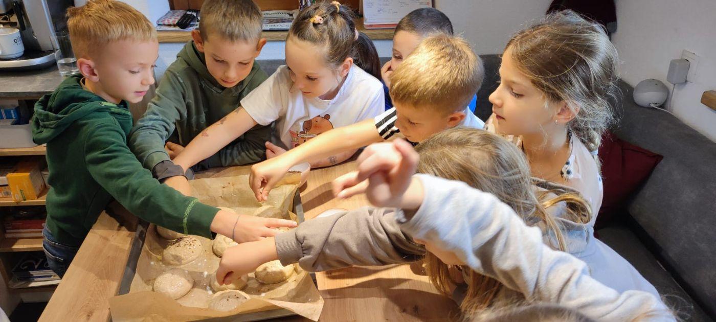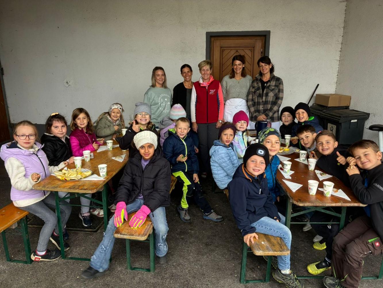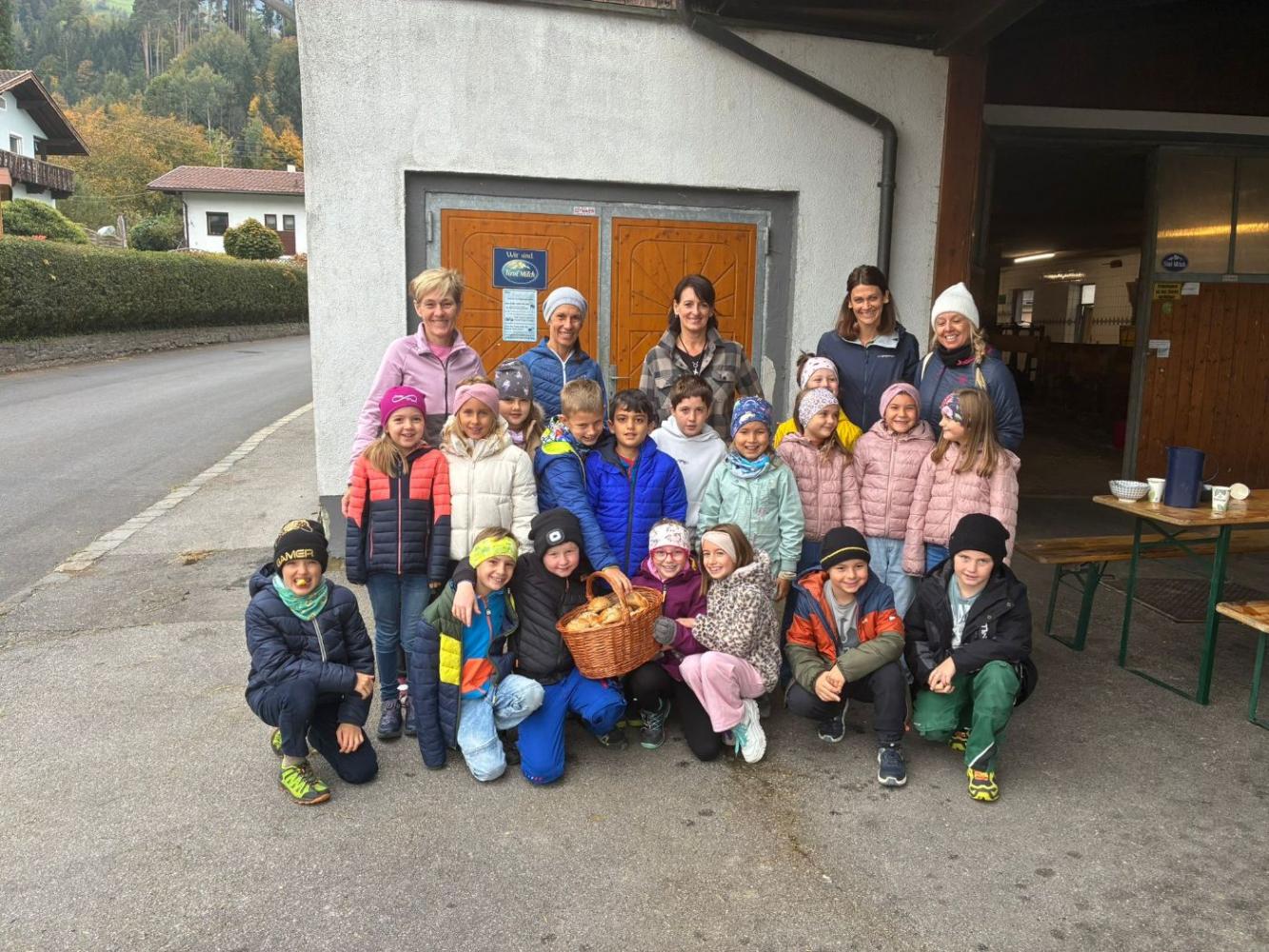 Die Kinder der zweiten Klassen durften den Bauernhof von Walli Klingenschmid besuchen. Mit viel Freude backten alle kleine Brötchen und erkundeten den Hof mit seinen Tieren. Zum Abschluss wurde das frisch gebackene Brot gemeinsam verkostet – dazu gab es leckere, frische Milch direkt vom Hof.